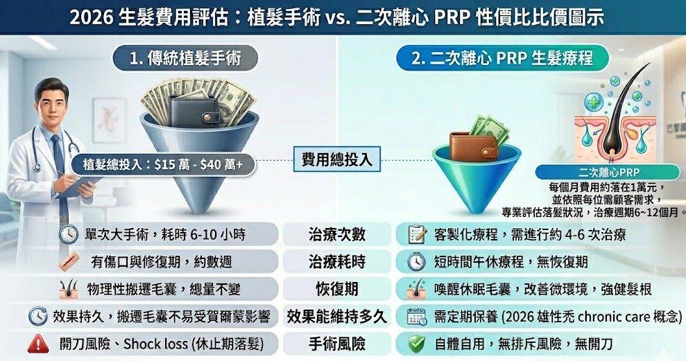 4. 【多面向比較】植髮 vs. 二次離心 PRP 生髮,費用與優勢怎麼選最划算?
