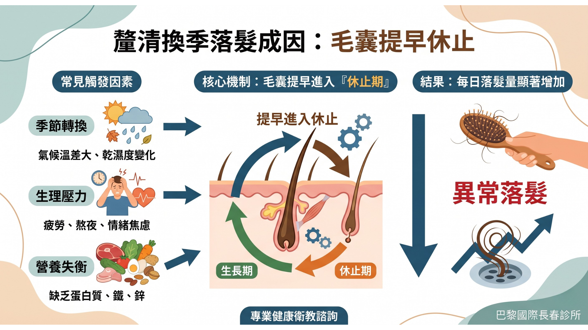 每逢秋冬換季,洗頭後排水孔累積的髮絲總讓人心驚膽顫。您是否也曾對著鏡子焦慮:「一直掉頭髮怎麼辦?這只是暫時的,還是我的髮際線正在失守?」 掉髮問題不分男女,當頭髮變細、頭皮透光,往往是毛囊健康發出的警訊 。本文將透過醫學角度,教您如何精準自測落髮狀況,並解析現代再生醫學如何活化萎縮毛囊 。