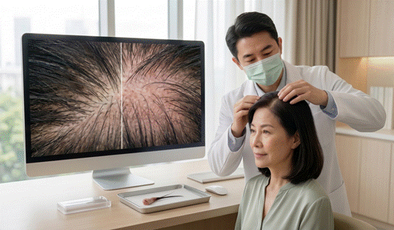 「每次洗頭,看著排水孔塞滿一團團的頭髮,心裡就一陣恐慌…」、「綁馬尾時發現髮量少了一大半,甚至在日光燈下,頭頂的分線白白寬寬的,根本不敢低頭。」這些場景,是許多女性患者在診間流下的焦慮與眼淚。面對洗頭時排水孔塞滿頭髮、或是一抓就掉一把的狀況,許多患者第一時間都會感到極度焦慮 。事實上,落髮不僅僅是外觀的改變,更伴隨著巨大的心理壓力,而落髮的成因多樣,正確的醫學診斷是有效治療的第一步 。破解迷思:女性也會有「雄性禿」嗎?