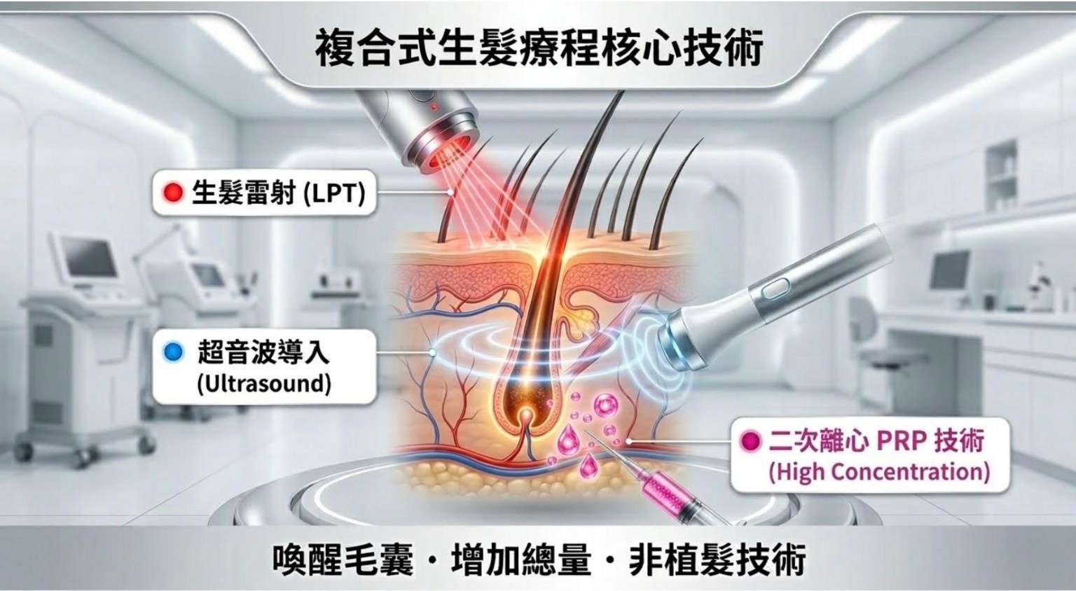 1.複合式生髮療程 : 以複合式的多種療程,達到有效、互補的功效。